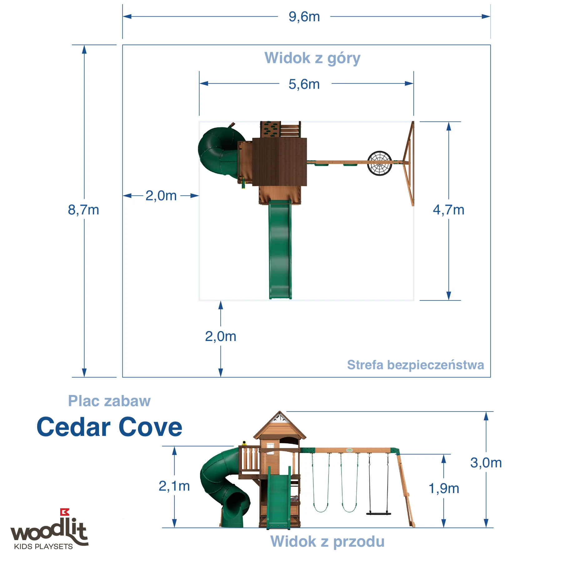 Długość – 5.60 m Szerokość – 4.70 m Wysokość – 3 m Wysokość podestu – 1.40 m